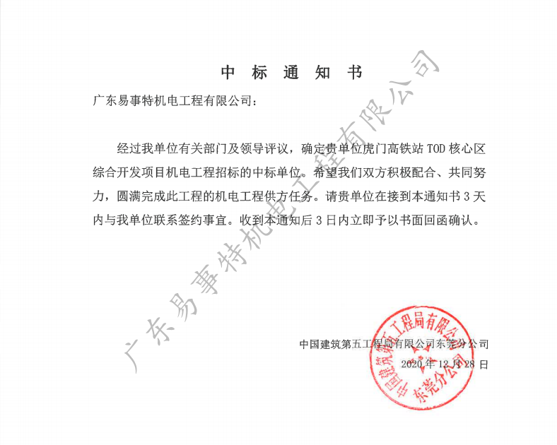 易事特機電成功中標